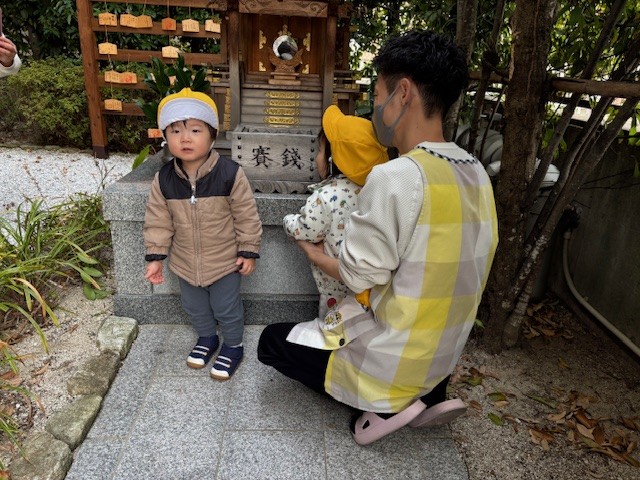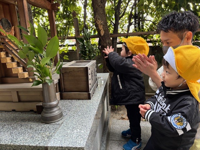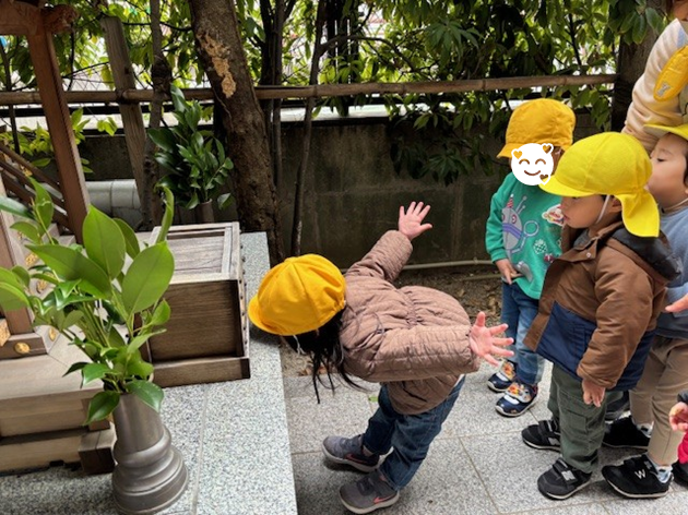 新年最初の園行事として初詣(御自作天満宮)に行きました。